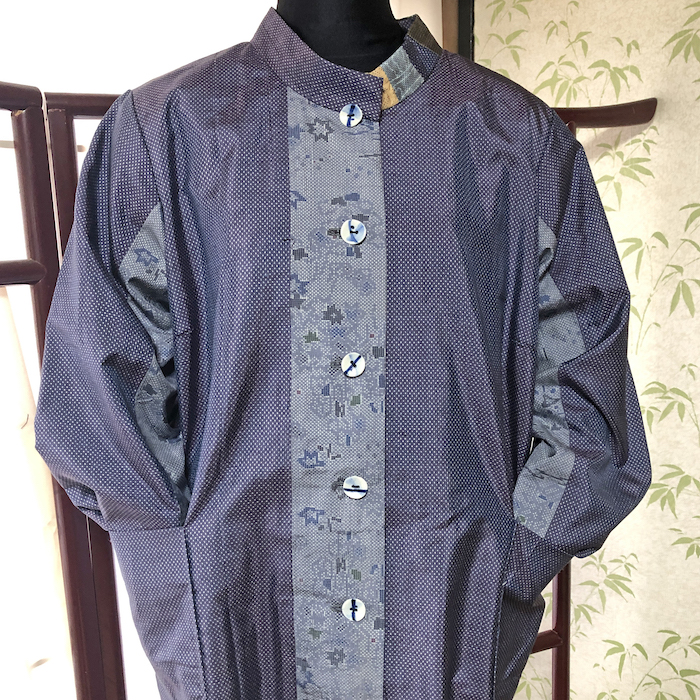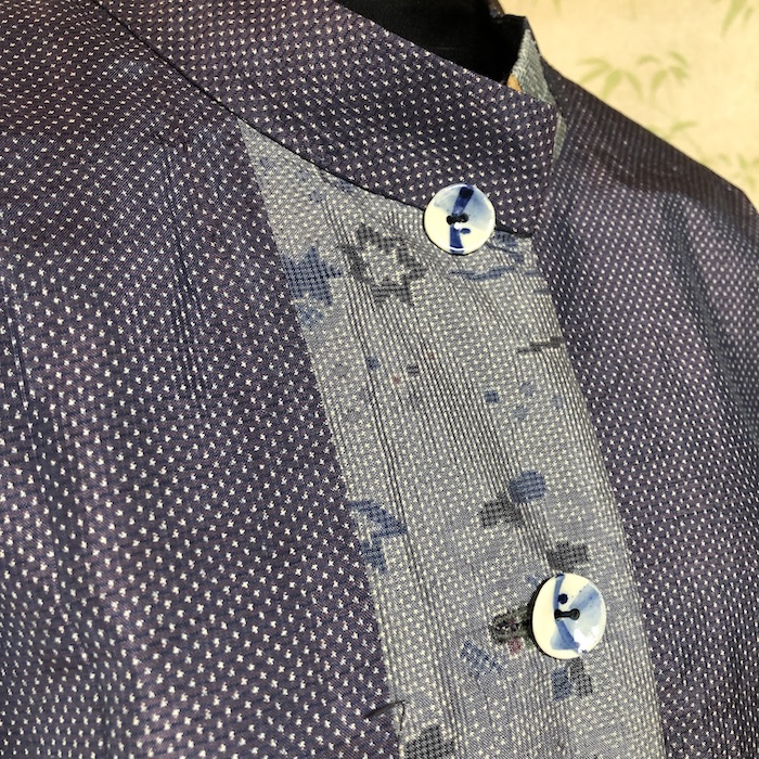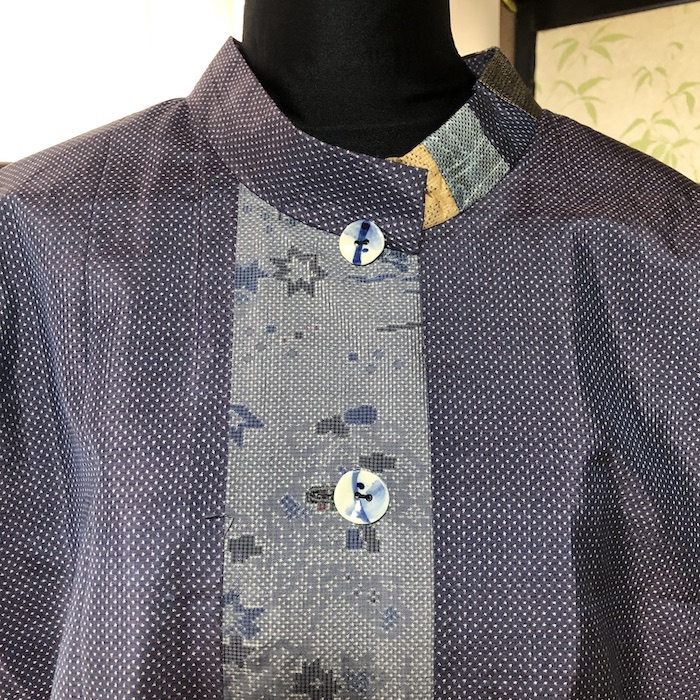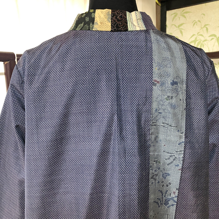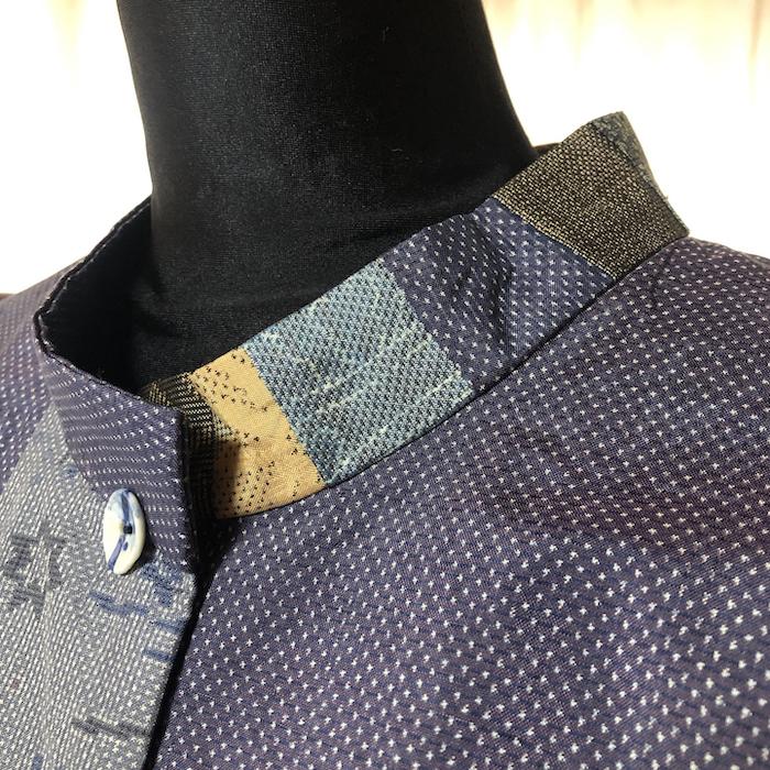 襟のパッチワークもこだわりです。