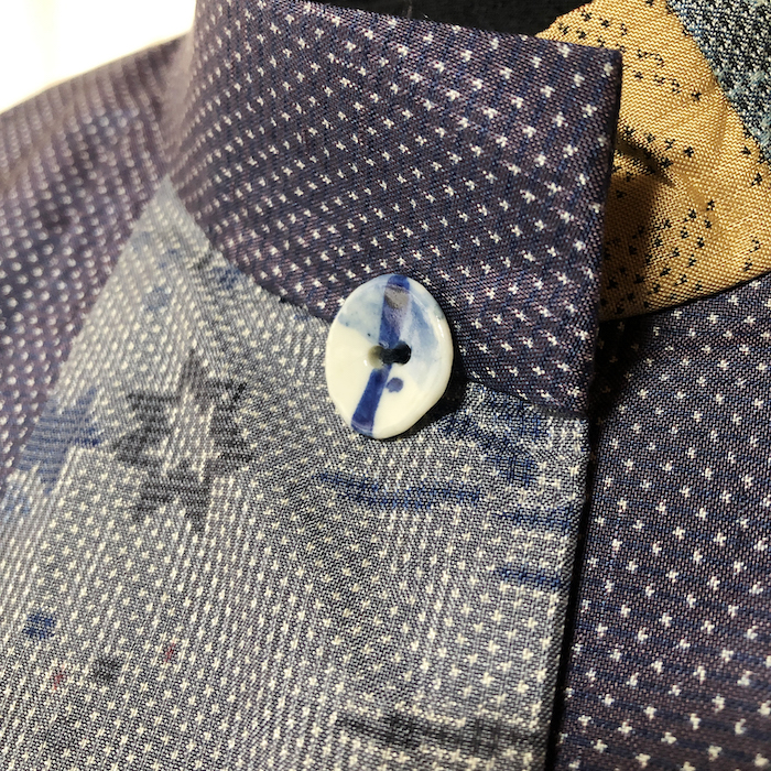 ボタンは谷川にある風香釜の特注陶器ボタン。