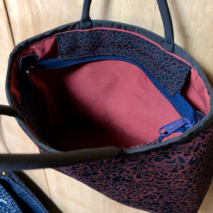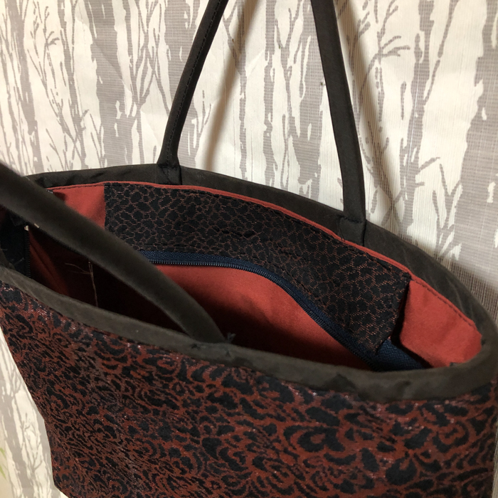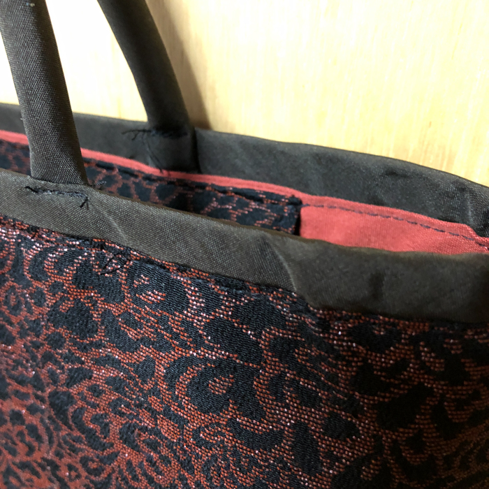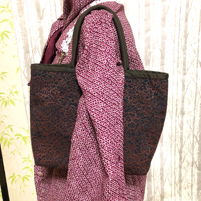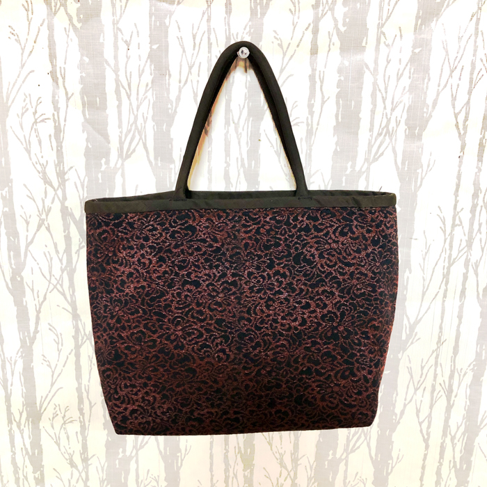 黒地漆箔の帯をリメイクしたトートバッグ。