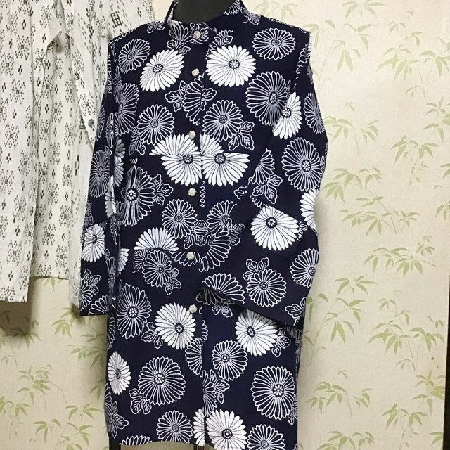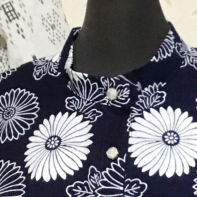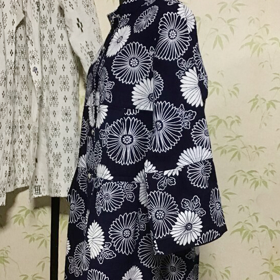 小さめの菊柄の浴衣をリメイクした、ブラウスになります。