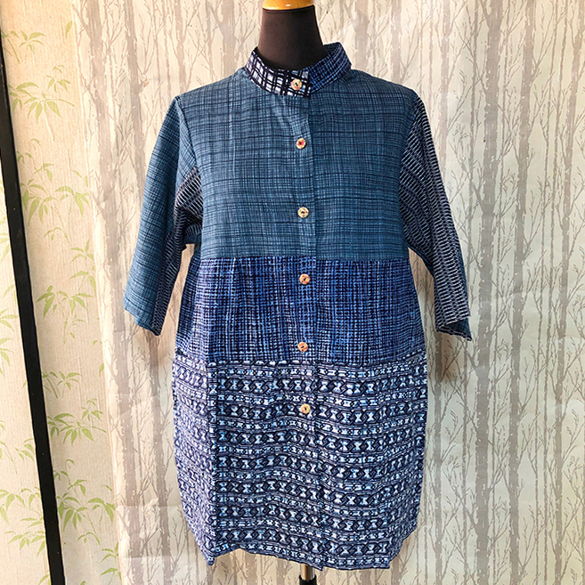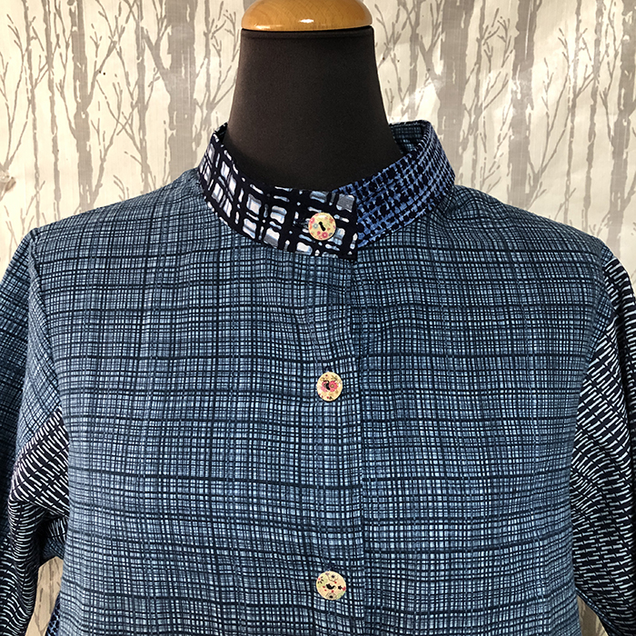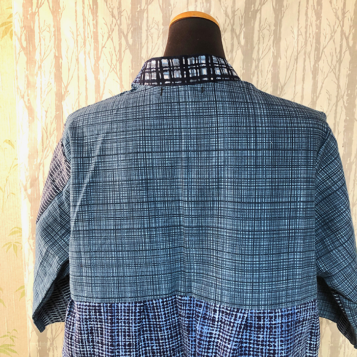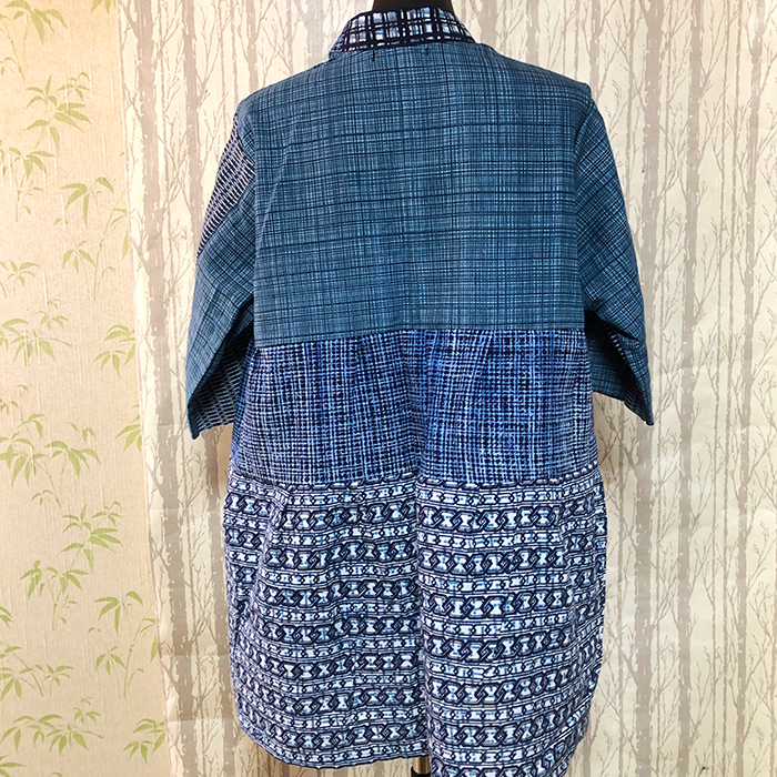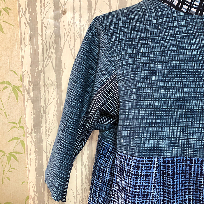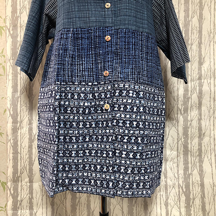 浴衣をリメイクした、3段のデザインが入ったブラウスです。