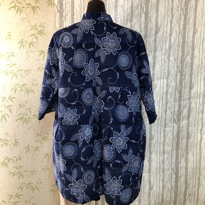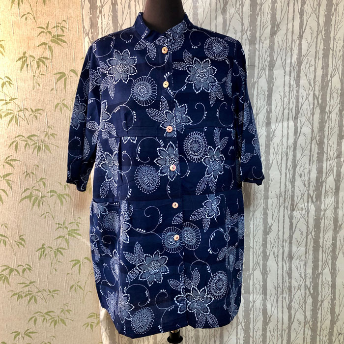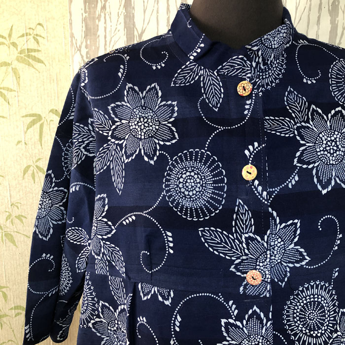 浴衣をリメイクした、3段のデザインが入ったブラウスです。