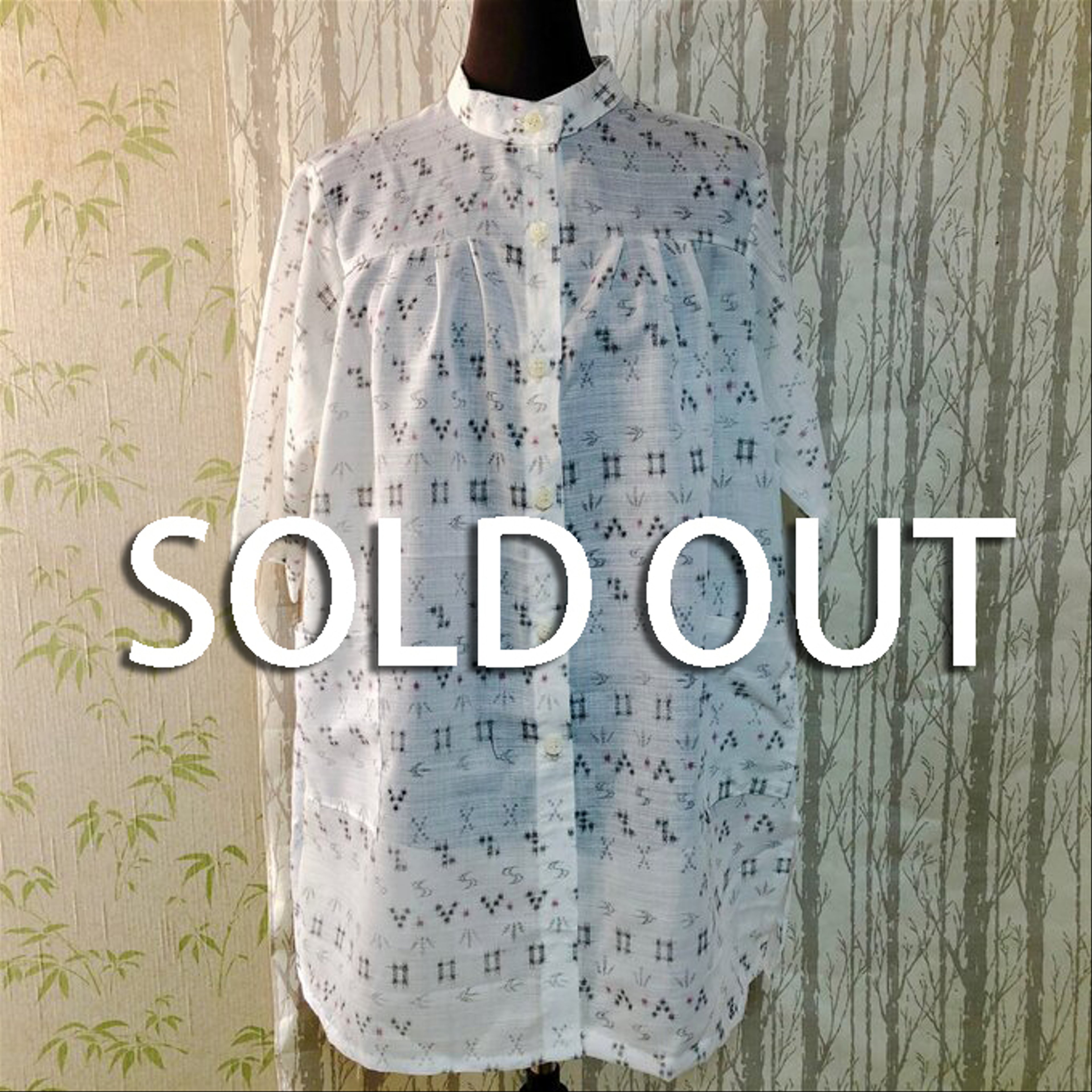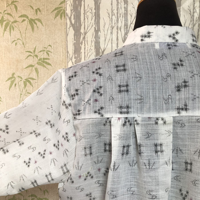 浴衣をリメイクした、3段のデザインが入ったブラウスです。